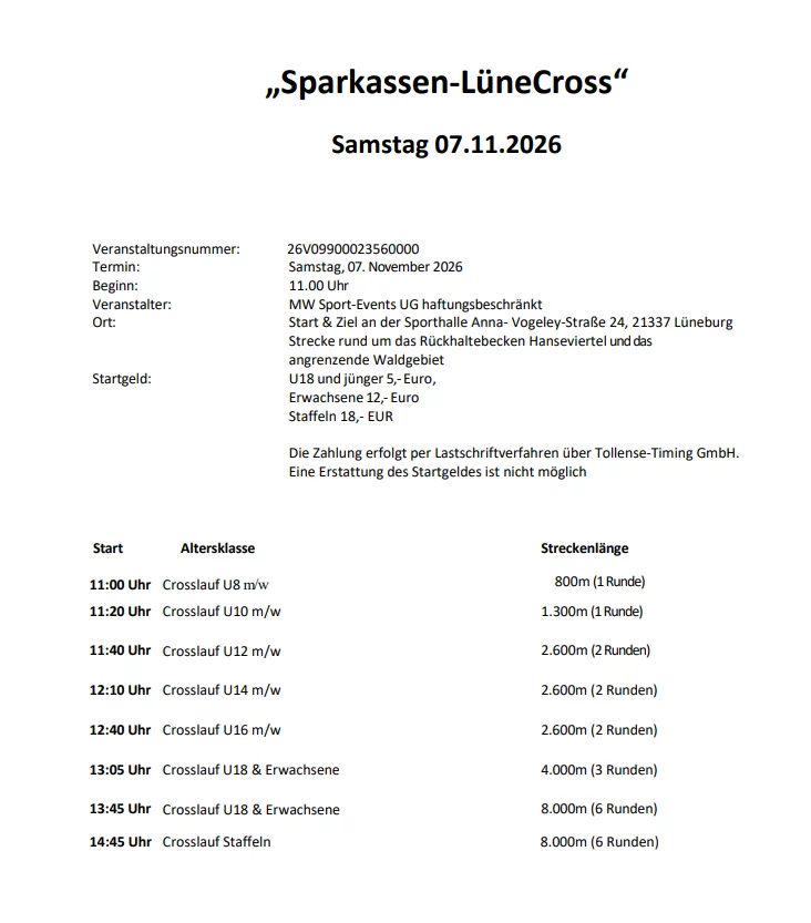 Ausschreibung, Strecke, Zeitplan